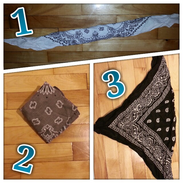 When you buy a brand new bandana, you will sometimes find it very rough and/or sturdy. To achieve desired “softness” and flexibility, tie it into as many knots as you can (not too tight, you’ll have to undo those knots). Plunge it in warm water with a good dose of liquid softener and let stand for a while (1-2 hrs); make sure it really soaked. Rinse thoroughly after soaking (softener can be irritating for sensitive skin), hang to dry, and see if the texture is good enough for you. Repeat until it’s just perfect.